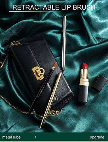 Rownyeon Travel Retractable Lip Brush Applicators Flat for Lipstick Gloss Creams Portable with Cap, Professional Makeup Brush for Women Girls As Christmas Gift and Halloween Makeup Tools