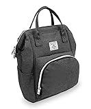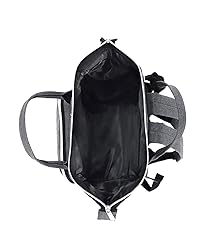Spacious main compartment with fish-mouth opening and a front zippered pocket Two grab handles for easy carry and adjustable back straps Two side pockets for easy stashing Back zipper for easy access to main compartment 8.5x6x13
