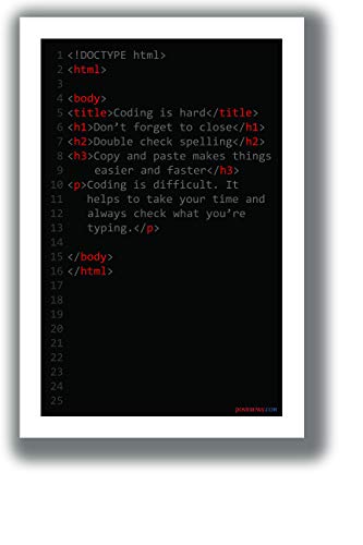Coding is Hard - NEW Basic Software Engineering Instructional POSTER! 12" x 18" Poster on High Quality heavy 80lb satin cover paper - durable and can stand up to all kinds of abuse and it will not pucker and wrinkle like others do. PosterEnvy EXCLUSIVE! That means you won't find it anywhere else in the world! Proudly Made in the U.S.A. 100% Satisfaction Guaranteed!