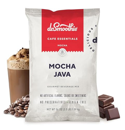 Dr. Smoothie Café Essentials Mocha Java – No Artificial Colors, Flavors, or Sweeteners – Shelf Stable – 61mg of Caffeine per Serving – Great for Hot, Iced, & Frozen Frappes (3.5 lb Bag, 30 Servings)
