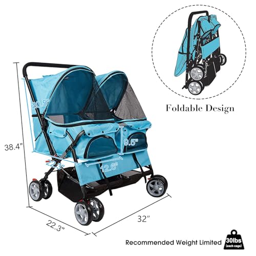 Cochecito doble para mascotas Dorticus, plegable, para perros, biplaza, carro de paseo para perro, gato y más, varios colores