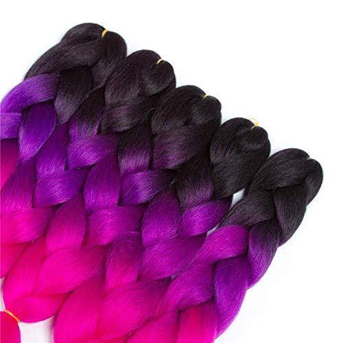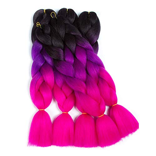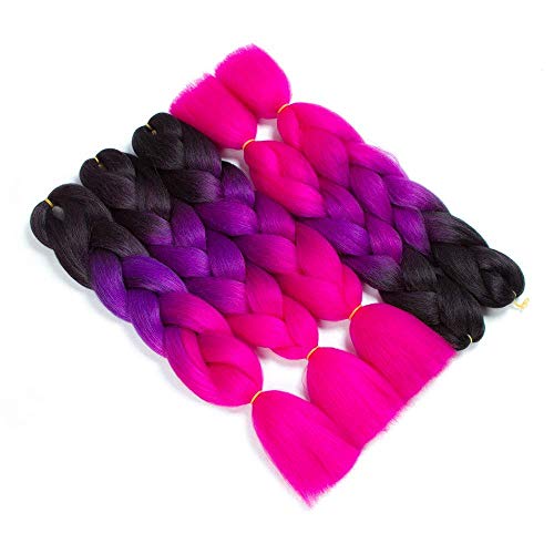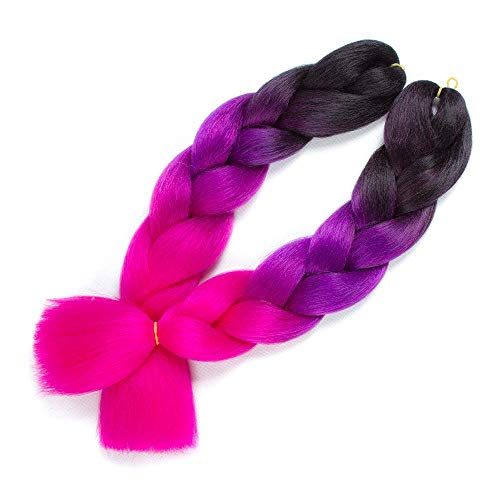 Braiding Hair Synthetic Ombre Hair Braiding High Temperature Fiber Crochet Twist Braids Black to purple to magenta Ombre 24 inch(100g 5pcs)