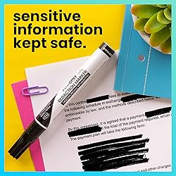 Redacting pen is perfect for confidential forms and sensitive documents. Black out mailing addresses on envelopes and packages. Hide personal information on prescription bottles and price tag gifts. Redact private information line by line, or multiple small sections within your document. Obscured text won’t be picked up on scanners or copy machines.