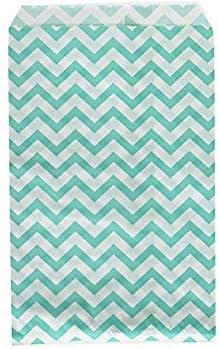 RJ Displays RJ Displays-100 pcs Chevron Paper Gift Bags Teal Turquoise for Gift Card, Gift Candy, Cookies, Doughnut, Crafts, Party Favor, Sandwich, Jewelry Merchandise Size 6" x 9"
