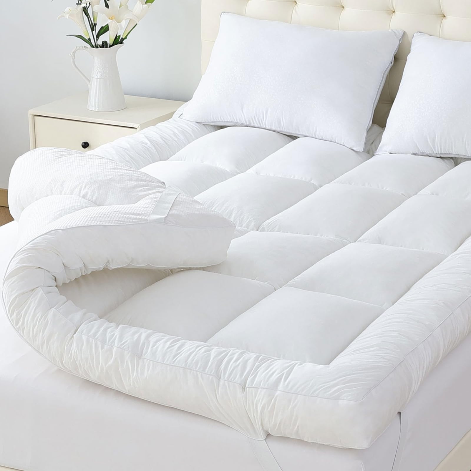 [{"options":[{"sku":"B0FJWMT5XF","option_code":"0","image":"https:\/\/m.media-amazon.com\/images\/I\/41QqkvWS4PL._SS64_.jpg","cloudfront_image":"https:\/\/m.media-amazon.com\/images\/I\/41QqkvWS4PL._UXTMWIDTH_UYTMHEIGHT_.jpg","label":"Waterproof Pure White","selected":false,"available":true,"images":[{"alt":"","src":"https:\/\/m.media-amazon.com\/images\/I\/61IKft5vxyL._AC_SR100,100_.jpg"},{"alt":"","src":"https:\/\/m.media-amazon.com\/images\/I\/71T40W5DDVL._AC_SR100,100_.jpg"},{"alt":"","src":"https:\/\/m.media-amazon.com\/images\/I\/71+mUy698jL._AC_SR100,100_.jpg"},{"alt":"","src":"https:\/\/m.media-amazon.com\/images\/I\/610aclHT9qL._AC_SR100,100_.jpg"},{"alt":"","src":"https:\/\/m.media-amazon.com\/images\/I\/71rSorIINEL._AC_SR100,100_.jpg"},{"alt":"","src":"https:\/\/m.media-amazon.com\/images\/I\/71GJtyahLBL._AC_SR100,100_.jpg"},{"alt":"","src":"https:\/\/m.media-amazon.com\/images\/I\/61cIsKDxNNL._AC_SR100,100_.jpg"},{"alt":"","src":"https:\/\/m.media-amazon.com\/images\/I\/51jI64GSoGL._AC_.jpg"},{"alt":"","src":"https:\/\/m.media-amazon.com\/images\/I\/612okkxmKAL._AC_SR100,100_.jpg"}],"delivery_data":{"fulfill_by":"","sold_by":"","vendor_delivery_day":""},"availability":{"stock":true}},{"sku":"B07HBNNYJK","option_code":"1","image":"https:\/\/m.media-amazon.com\/images\/I\/51SoEYn5jEL._SS64_.jpg","cloudfront_image":"https:\/\/m.media-amazon.com\/images\/I\/51SoEYn5jEL._UXTMWIDTH_UYTMHEIGHT_.jpg","label":"White-waterproof","selected":true,"available":true,"images":[{"alt":"","src":"https:\/\/m.media-amazon.com\/images\/I\/61CCpr6iRHL._AC_SR100,100_.jpg"},{"alt":"","src":"https:\/\/m.media-amazon.com\/images\/I\/61eCv5Pe5OL._AC_SR100,100_.jpg"},{"alt":"","src":"https:\/\/m.media-amazon.com\/images\/I\/61FWfZbXraL._AC_SR100,100_.jpg"},{"alt":"","src":"https:\/\/m.media-amazon.com\/images\/I\/718nRPA82VL._AC_SR100,100_.jpg"},{"alt":"","src":"https:\/\/m.media-amazon.com\/images\/I\/71Uv1AGvt4L._AC_SR100,100_.jpg"},{"alt":"","src":"https:\/\/m.media-amazon.com\/images\/I\/614akqrFD2L._AC_SR100,100_.jpg"},{"alt":"","src":"https:\/\/m.media-amazon.com\/images\/I\/71jINIocNPL._AC_SR100,100_.jpg"},{"alt":"","src":"https:\/\/m.media-amazon.com\/images\/I\/51clMtw2yzL._AC_SR100,100_.jpg"}],"delivery_data":{"fulfill_by":"","sold_by":"","vendor_delivery_day":""},"availability":{"stock":true}}],"variation_label":"Color","variation_code":"color","variation_display_type":"image","variation_action":"scrap","variation_display_limit":12,"variation_option_selected":"White-waterproof","variation_display_remaining":-10,"variation_slug":"color"},{"options":[{"sku":"B0FM2L4SY4","option_code":"4","image":"https:\/\/m.media-amazon.com\/images\/I\/61CCpr6iRHL._AC_SR100,100_.jpg","cloudfront_image":"https:\/\/m.media-amazon.com\/images\/I\/61CCpr6iRHL._UXTMWIDTH_UYTMHEIGHT_.jpg","label":"California King(72\"x84\"+16\")","selected":false,"available":true,"images":[{"alt":"","src":"https:\/\/m.media-amazon.com\/images\/I\/61CCpr6iRHL._AC_SR100,100_.jpg"},{"alt":"","src":"https:\/\/m.media-amazon.com\/images\/I\/61WB2JRFIeL._AC_SR100,100_.jpg"},{"alt":"","src":"https:\/\/m.media-amazon.com\/images\/I\/61FWfZbXraL._AC_SR100,100_.jpg"},{"alt":"","src":"https:\/\/m.media-amazon.com\/images\/I\/71DC66auwIL._AC_SR100,100_.jpg"},{"alt":"","src":"https:\/\/m.media-amazon.com\/images\/I\/71Uv1AGvt4L._AC_SR100,100_.jpg"},{"alt":"","src":"https:\/\/m.media-amazon.com\/images\/I\/614akqrFD2L._AC_SR100,100_.jpg"},{"alt":"","src":"https:\/\/m.media-amazon.com\/images\/I\/71jINIocNPL._AC_SR100,100_.jpg"},{"alt":"","src":"https:\/\/m.media-amazon.com\/images\/I\/51clMtw2yzL._AC_SR100,100_.jpg"},{"alt":"","src":"https:\/\/m.media-amazon.com\/images\/I\/51ZtrfsRvNL._AC_SR100,100_.jpg"}],"delivery_data":{"fulfill_by":"","sold_by":"","vendor_delivery_day":""},"availability":{"stock":true}},{"sku":"B0FJXC3J6C","option_code":"1","image":"https:\/\/m.media-amazon.com\/images\/I\/61CCpr6iRHL._AC_SR100,100_.jpg","cloudfront_image":"https:\/\/m.media-amazon.com\/images\/I\/61CCpr6iRHL._UXTMWIDTH_UYTMHEIGHT_.jpg","label":"Full(54\"x75\"+16\")","selected":false,"available":true,"images":[{"alt":"","src":"https:\/\/m.media-amazon.com\/images\/I\/61CCpr6iRHL._AC_SR100,100_.jpg"},{"alt":"","src":"https:\/\/m.media-amazon.com\/images\/I\/61WB2JRFIeL._AC_SR100,100_.jpg"},{"alt":"","src":"https:\/\/m.media-amazon.com\/images\/I\/61FWfZbXraL._AC_SR100,100_.jpg"},{"alt":"","src":"https:\/\/m.media-amazon.com\/images\/I\/71DC66auwIL._AC_SR100,100_.jpg"},{"alt":"","src":"https:\/\/m.media-amazon.com\/images\/I\/71Uv1AGvt4L._AC_SR100,100_.jpg"},{"alt":"","src":"https:\/\/m.media-amazon.com\/images\/I\/614akqrFD2L._AC_SR100,100_.jpg"},{"alt":"","src":"https:\/\/m.media-amazon.com\/images\/I\/71jINIocNPL._AC_SR100,100_.jpg"},{"alt":"","src":"https:\/\/m.media-amazon.com\/images\/I\/51clMtw2yzL._AC_SR100,100_.jpg"}],"delivery_data":{"fulfill_by":"","sold_by":"","vendor_delivery_day":""},"availability":{"stock":true}},{"sku":"B0FJXMC153","option_code":"3","image":"https:\/\/m.media-amazon.com\/images\/I\/61CCpr6iRHL._AC_SR100,100_.jpg","cloudfront_image":"https:\/\/m.media-amazon.com\/images\/I\/61CCpr6iRHL._UXTMWIDTH_UYTMHEIGHT_.jpg","label":"King(78\"x80\"+16\")","selected":false,"available":true,"images":[{"alt":"","src":"https:\/\/m.media-amazon.com\/images\/I\/61CCpr6iRHL._AC_SR100,100_.jpg"},{"alt":"","src":"https:\/\/m.media-amazon.com\/images\/I\/61WB2JRFIeL._AC_SR100,100_.jpg"},{"alt":"","src":"https:\/\/m.media-amazon.com\/images\/I\/61FWfZbXraL._AC_SR100,100_.jpg"},{"alt":"","src":"https:\/\/m.media-amazon.com\/images\/I\/71DC66auwIL._AC_SR100,100_.jpg"},{"alt":"","src":"https:\/\/m.media-amazon.com\/images\/I\/71Uv1AGvt4L._AC_SR100,100_.jpg"},{"alt":"","src":"https:\/\/m.media-amazon.com\/images\/I\/614akqrFD2L._AC_SR100,100_.jpg"},{"alt":"","src":"https:\/\/m.media-amazon.com\/images\/I\/71jINIocNPL._AC_SR100,100_.jpg"},{"alt":"","src":"https:\/\/m.media-amazon.com\/images\/I\/51clMtw2yzL._AC_SR100,100_.jpg"},{"alt":"","src":"https:\/\/m
