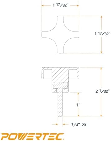 POWERTEC 5 Pack 1/4"-20 4 Point Knobs with 1" Threaded Stud, Thumb Screw Knobs with Bolts for Lawn Mower, Umbrella Base, Woodworking Tools & Jigs, Clamps (QNB3008)
