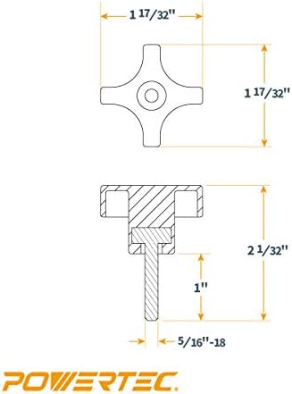POWERTEC 5 Pack 5/16"-18 4 Point Knobs with 1" Threaded Stud, Thumb Screw Knobs with bolts for Lawn Mower, Umbrella Base, Woodworking Tools & Jigs, Clamps (QNB3009)