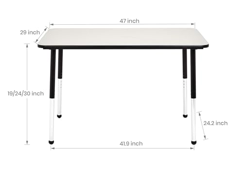 Amazon Basics Adjustable Rectangular Classroom Activity Table, Writing Desk, Adjustable Height 19-30 Inch, Grey Top/Black Edge, 47" W x 29" L x 30" H