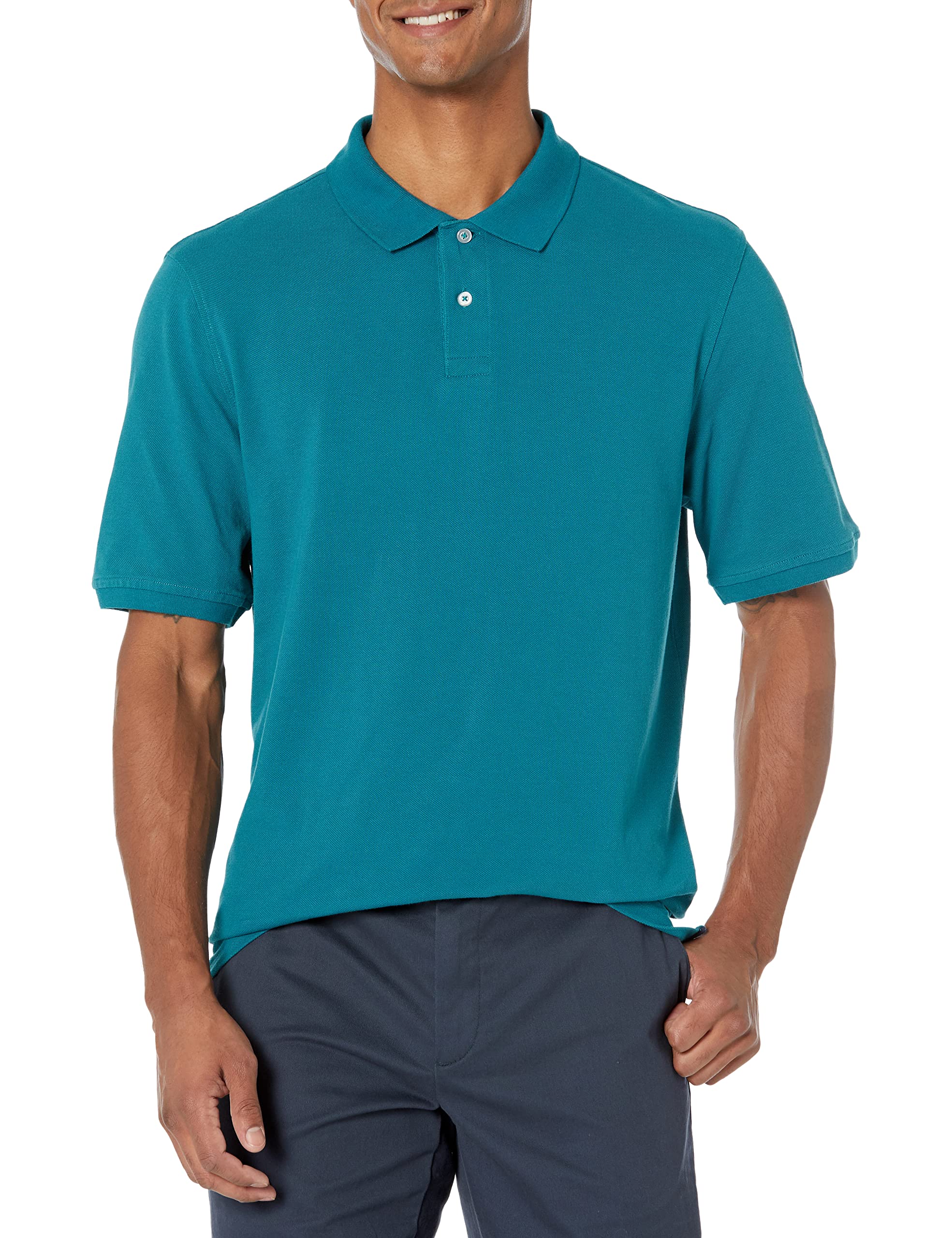 Preshrunk 100 percent cotton pique, 6.2 o., relaxed fit, taped neck and side vents, half-moon patch, wood-tone buttons, sizes: s-to 6x-l