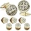 HAWSON Gold Cufflinks and Tuxedo Studs for Men Boy with Gift Box, Suitable for Black Suit White Shirt Bow Tie Vest, Mens Jewelry or Accessories on Wedding Birthday Anniversary Father's Day