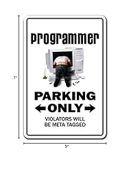 - Get a fun novelty sticker for your home and office and show off your sense of humor. Looking for a fun, hilarious Decal to hang on your cubicle or in your man cave? If so, SignMission has all the cute, funny, hilarious, and even work-related novelty stickers you're looking for! Something for Everyone We've got a wide range of American-made Decals just like this one that will tickle your funny bone, make others smile, or even show off your snarky attitude. Made To Last Made from a special Vinyl designed to hold up to a beating, This Decal can bend with out breaking and will never chip or crack, the colorful lettering will last a lifetime indoors and up to 4 years in the sun for outdoor use. Product Details: Pre-Drilled Mounting Holes Indoor and Outdoor Use Rust and Fade Resistant One-Sided Dimension: 5 X 7Made in the USA Outdoor Durable Vinyl and Premium-Grade Ink Click Add to Cart to get your Programmer Decal today and enjoy a good laugh each time you pass by!