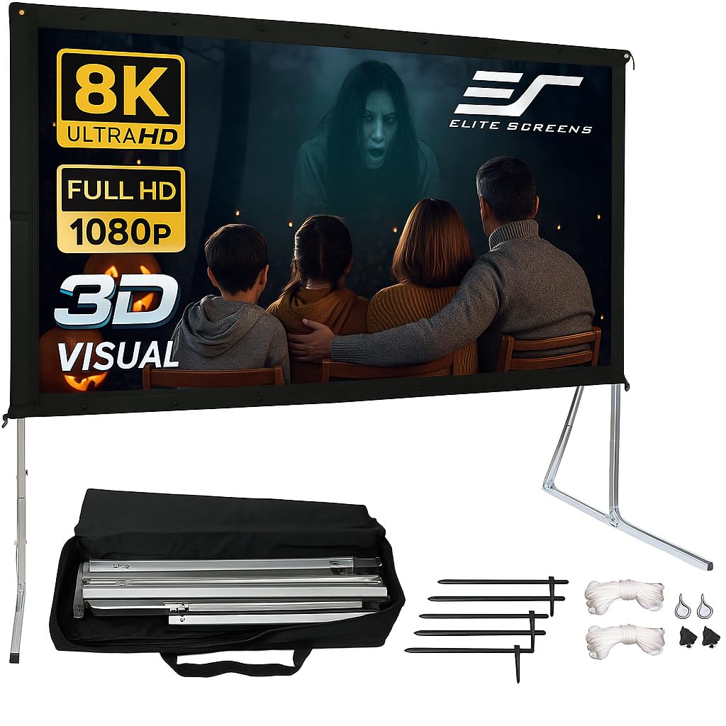 Elite Screens Yard Master Sport, 110-Inch Portable Projector Screen, Dual Tripod/Wall Hanging 2-in-1 Design, 4:3, MaxWhite 1.1 Gain, 180 Degrees, 4K Ultra HD & 3D Ready, Indoor/Outdoor w/ Carry Bag