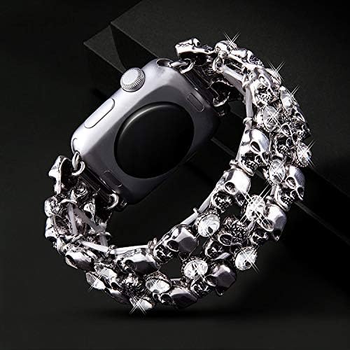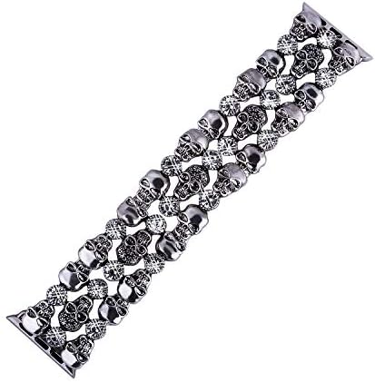 Viqiv Crystal Rhinestone Replacement Band for Apple Smart Watch Series 4 (2018) Series 3 (2017) Series 2 (2016) Series 1 (2015). All Models Unique Skull Fashion Jewelry Design Bands for Apple Watch iWatch iPhone Watch Made of premium Alloy Gives your apple watch a new look Goes with any jewelry This band looks elegant. It gives you a nice option to wear your apple watch with dresses. For New Year For party For Xmas For Halloween Product description: Made of high quality Alloy. The rhinestone on the link makes your smart watch look more fashionable. Wrist Set with rhinestones. Makes your iwatch band look like a Skull jewelry. Brings you lots of compliments; The hollowed-out design not only makes the band lightweight and elegant but also creates ventilation holes. Allow your wrist to breathe. Fits wrist size 6.5-7.5 inches wrist. VIQIV Band fits all Apple Watch versions: series1, series 2, series 3, sport & edition. High-tech polished surface watch strap fits your device and feels comfortable on your wrist. It is an unique and shiny gift idea for any occasion: Christmas, Birthday, Valentines day Holidays, Parties, Concerts, Gifts Etc.etc. Perfect Gift for women and girls. it makes your smart watch look more fashionable.Wrist Set with Skull Makes your iwatch band look like a jewelry. Brings you lots of compliments; Package include: 1* Viqiv replacement band