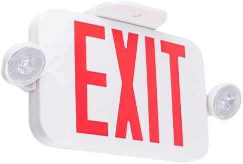 LIT-PaTH LED Combo EXIT Sign with 2 Adjustable Head Lights and Doube Face, Back Up Batteries- US Standard Red Letter Emergency Exit Lighting, UL 924 and CEC Qualified, 120-277 Voltage, 1-Pack