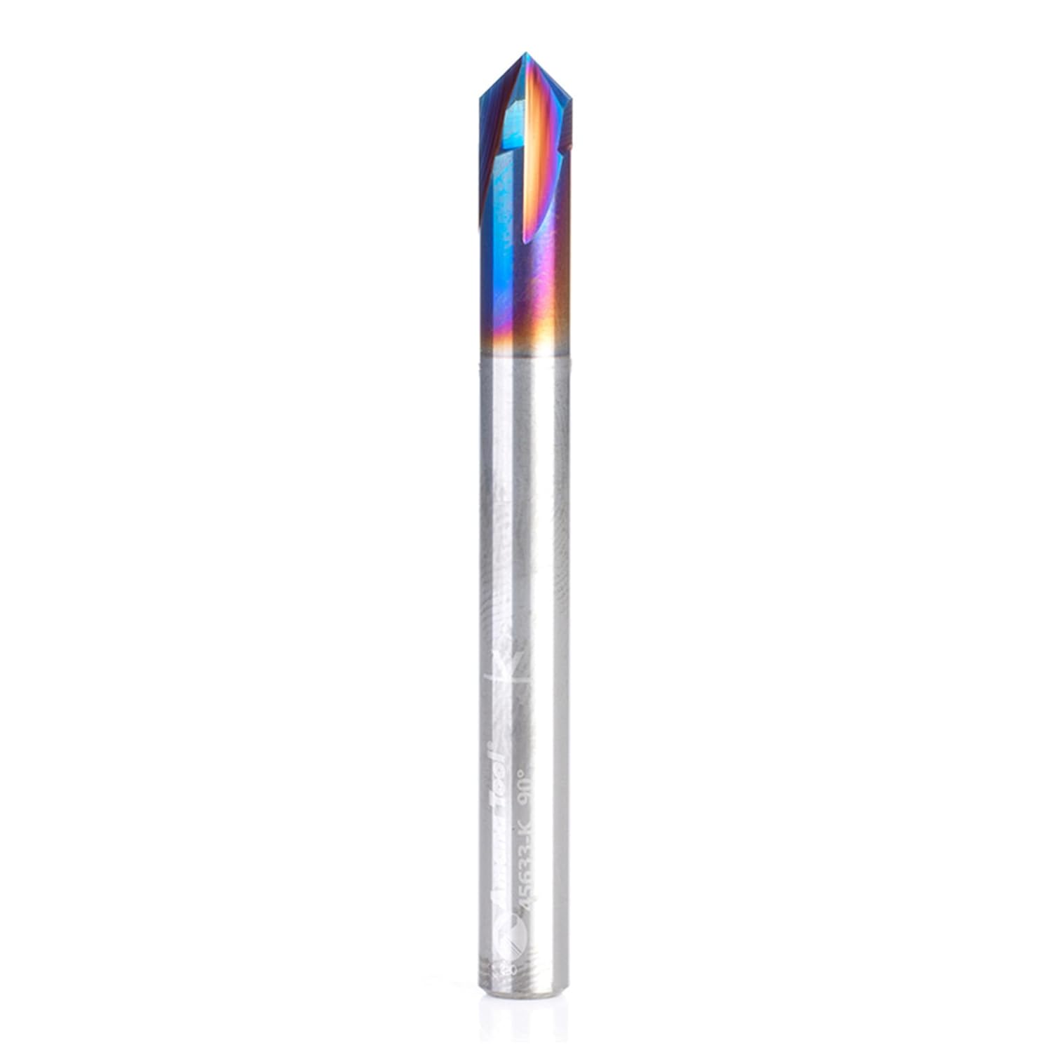 Amana Tool Spektra Extreme Tool Life Coated Solid Carbide V-Groove Router Bit, 45624-K, 60 Degree x 1/4 D x 7/32 CH x 1/4 Inch Shank 3-Flute
