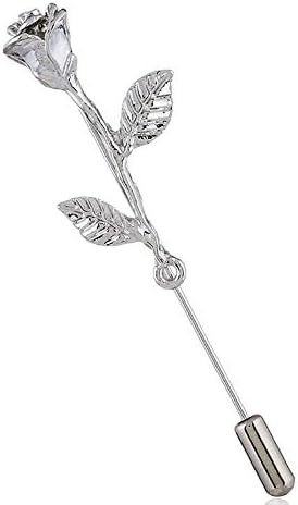 Fashion Men Rose Floral Lapel Stick Brooch Pin Suit Tuxedo Corsage Accessory (Silver)