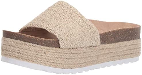 Slip-on open toe platform espadrille sandal with chunky jute bottom, jute one band upper, and molded footbed