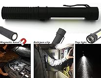 POWERFUL 3W COB LED side element emits 120 LUMENS which easily lights your work area uniformly plus one end functions as a conventional hand flashlight STRONG TAIL MAGNET - allows mounting on steel car panels like the fenders or hood for hands-free use. Also features a CLOTHING CLIP which clips securely onto your coat pocket or belt if required WATER AND SHOCK RESISTANT so it will stand up to rough use in emergency situations in the worst weather CONVENIENT SIZE AND HI VIS COLOUR - at only 6.5" long and 1" wide it fits perfectly and prominently in the glovebox [ PACKAGE ] Pack of 4 flashlights, requires 3 x AAA batteries (not included).