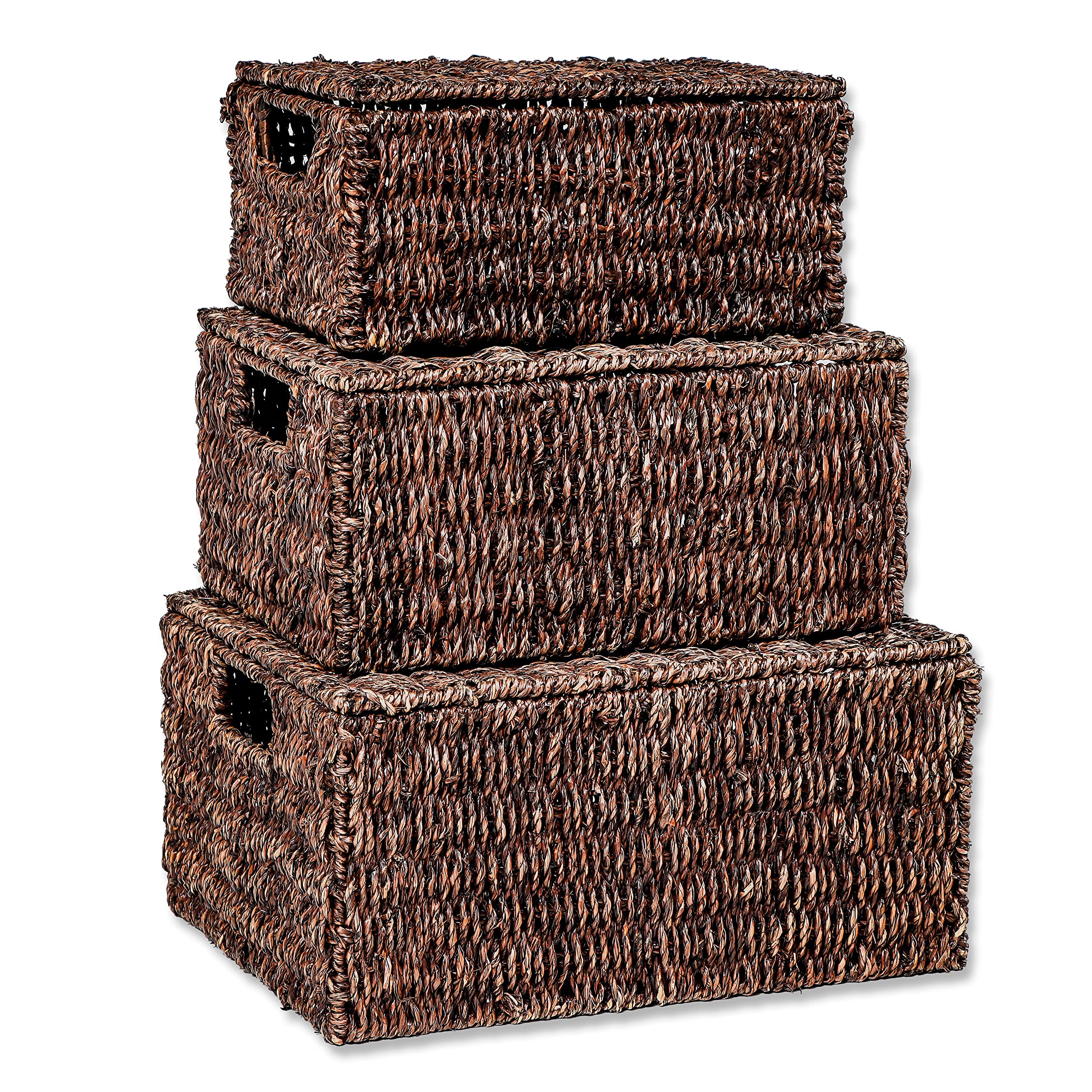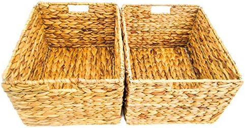This set of 2 rectangle water hyacinth baskets can be used for storage while also adding a touch of décor to any room. Each basket measures 16"L x 12"W x 10"H and comes as a set of 5. The baskets fold flat for easy storage. By Trademark Innovations.