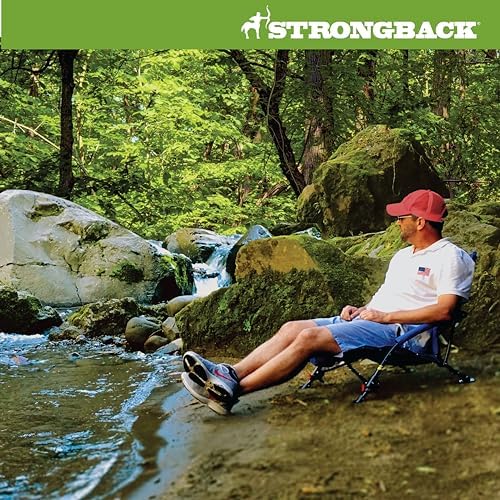 STRONGBACK Beach Chairs - Low Gravity Recliner Portable Beach Chair - with Built-in Lumbar Support - Heavy Duty Folding Beach Chairs - Great for Travel - Black