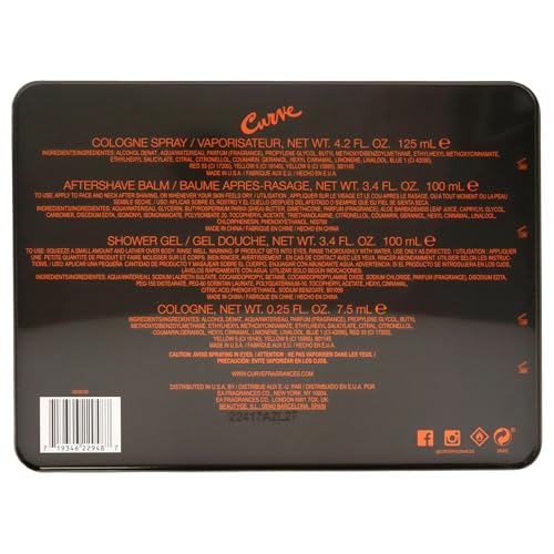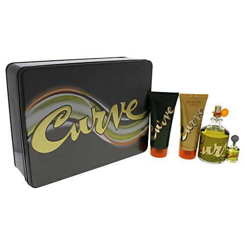 Conjunto de 4 piezas para hombres Curve por Liz Claiborne Incluye: 4.2 oz de spray de colonia + 3.4 oz de calmante para la piel + 0.5 oz de spray de viaje de colonia + 3.4 oz de champú y gel de baño para cabello y cuerpo
