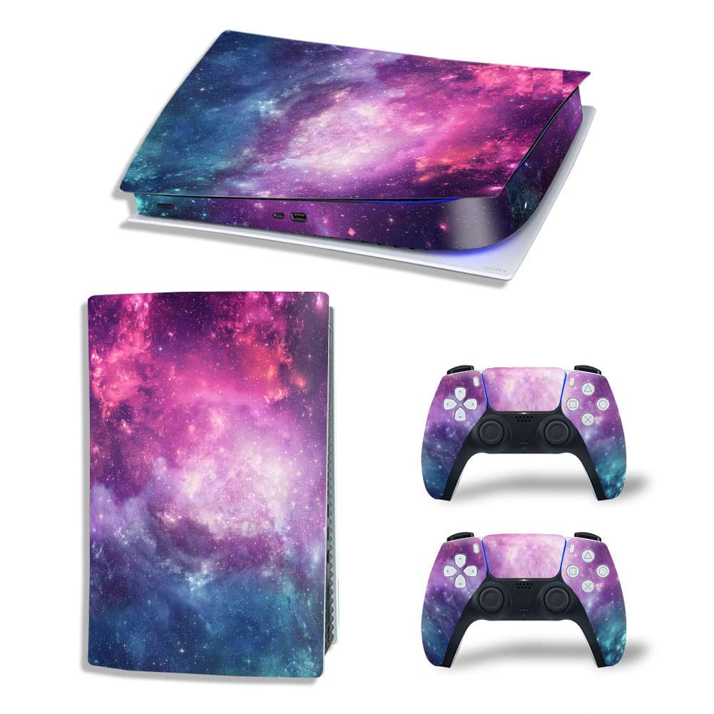 Protective Vinyl Skin Decal Cover for Microsoft Xbox One Console wrap Sticker Skins with Two Free Wireless Controller Decals Purple Starry Sky(NOT for One S or X)