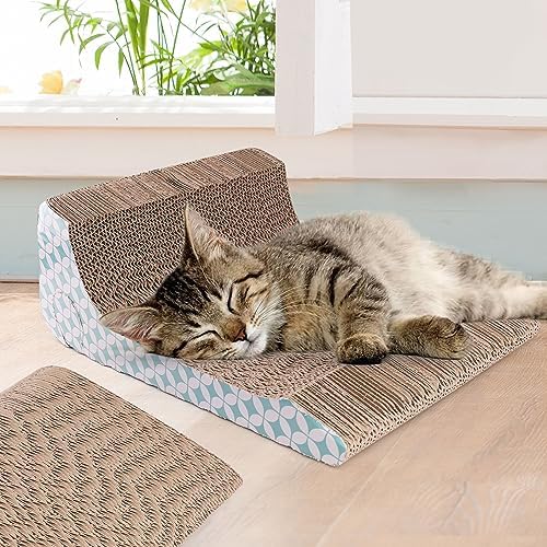 - Environmentally friendly cardboard cat scratcher: MADE WITH 100% RECYCLED CORRUGATED CARDBOARD. Non-Toxic, environmentally friendly material is recyclable, reducing your carbon footprint. Award your cat with the free Organic Catnip (included) which your cat will absolutely love. It is safe for your cats and the environment