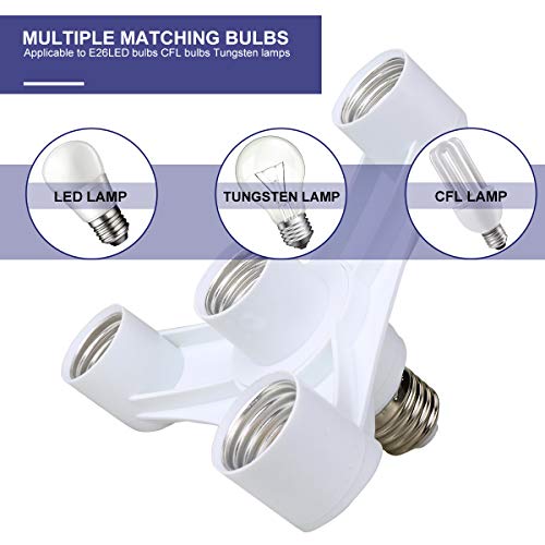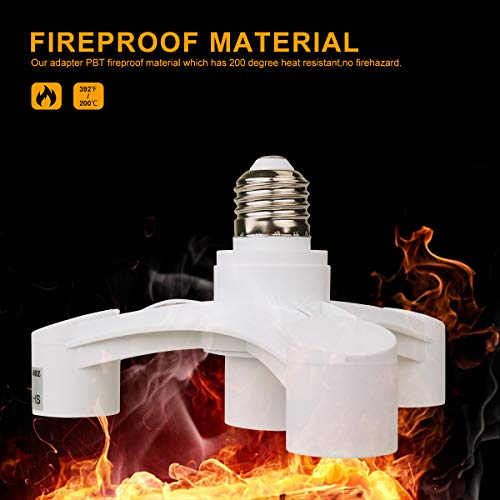 4 in 1 Light Bulb Socket Splitter, E26/E27 Light Socket Adapter Conventer, Standard Base LED Bulb Converter, Fixed&Heat-Resistant