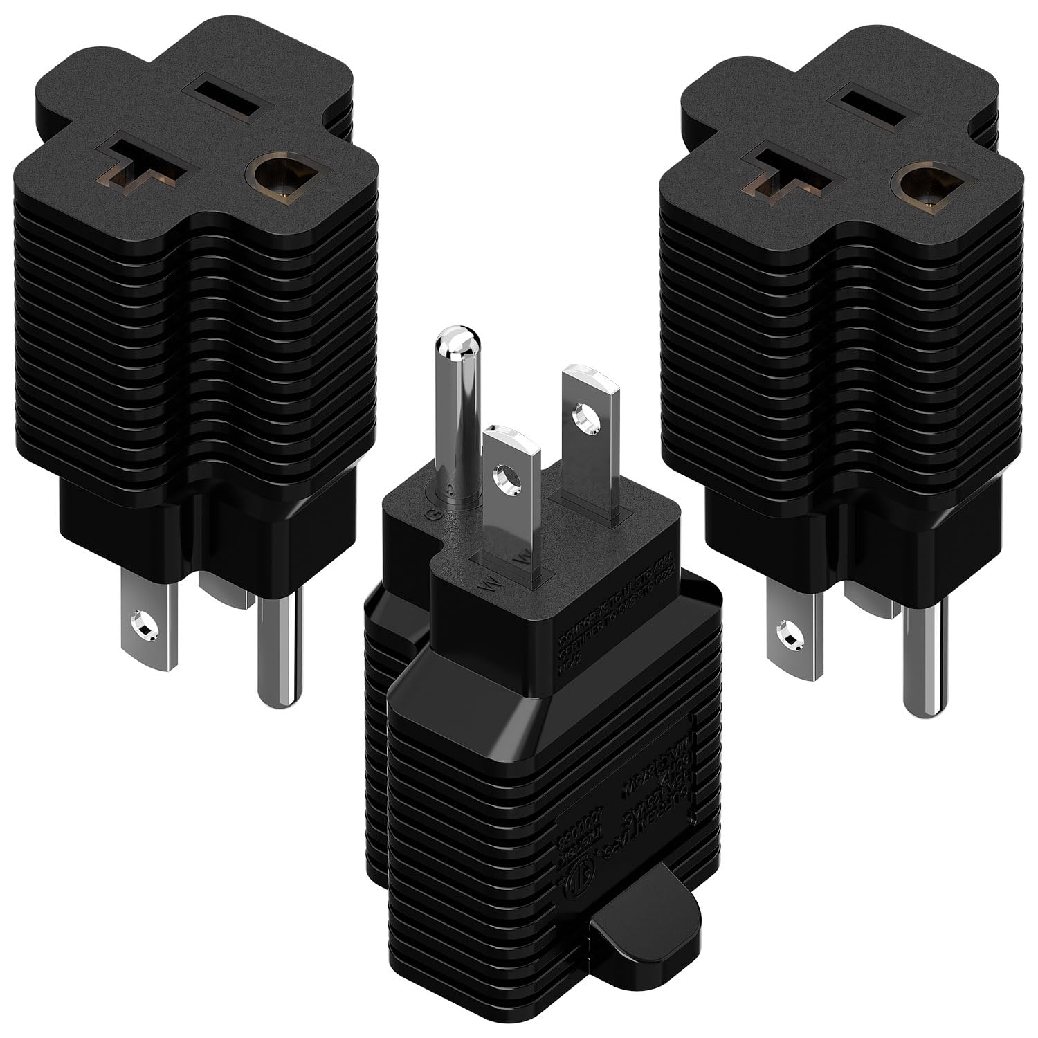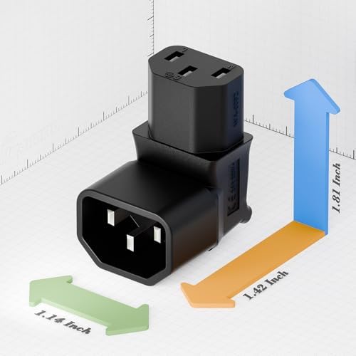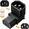 [3PACK] IEC 320 C14 to C13 Right Angle AC Adapter, Vellcon IEC 3Pole Male to Female 90Degree Up Angle AC converter, C14 to C13 Up Angle AC Adapter, Black Color