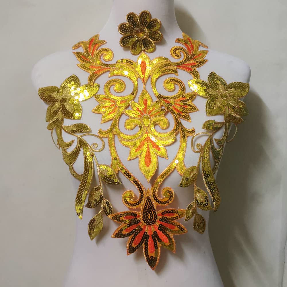 Material: lace / net gauze/Sequins. Size:Total length 42 cm/16.5 inches Approx. full width 22 cm/8.66 inches. Package includes: 1 pieces of packaging. Weight: about 25 grams. Way of use: stitching (without glue) by hand. Use for: Wedding Dress,Evening Dress,Bridal Dress,Costume,Dancing Dress,Home Decor,Dress Motif, Anywhere you could imagine. Dress made in this Lace Applique makes your look more charming and elegant.