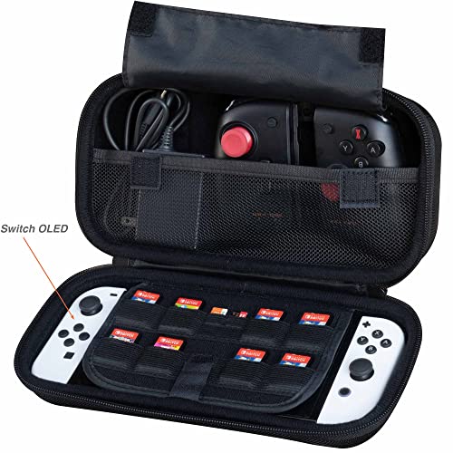 ButterFox Extra Large Switch Case for Nintendo Switch OLED, Fits Nintendo Pro Controller or Hori Split Pad Pro Controller, Wall Charger AC Adapter, 8 Game Card Holders - Black