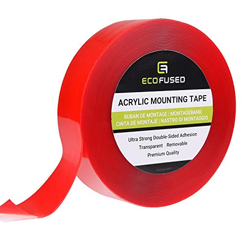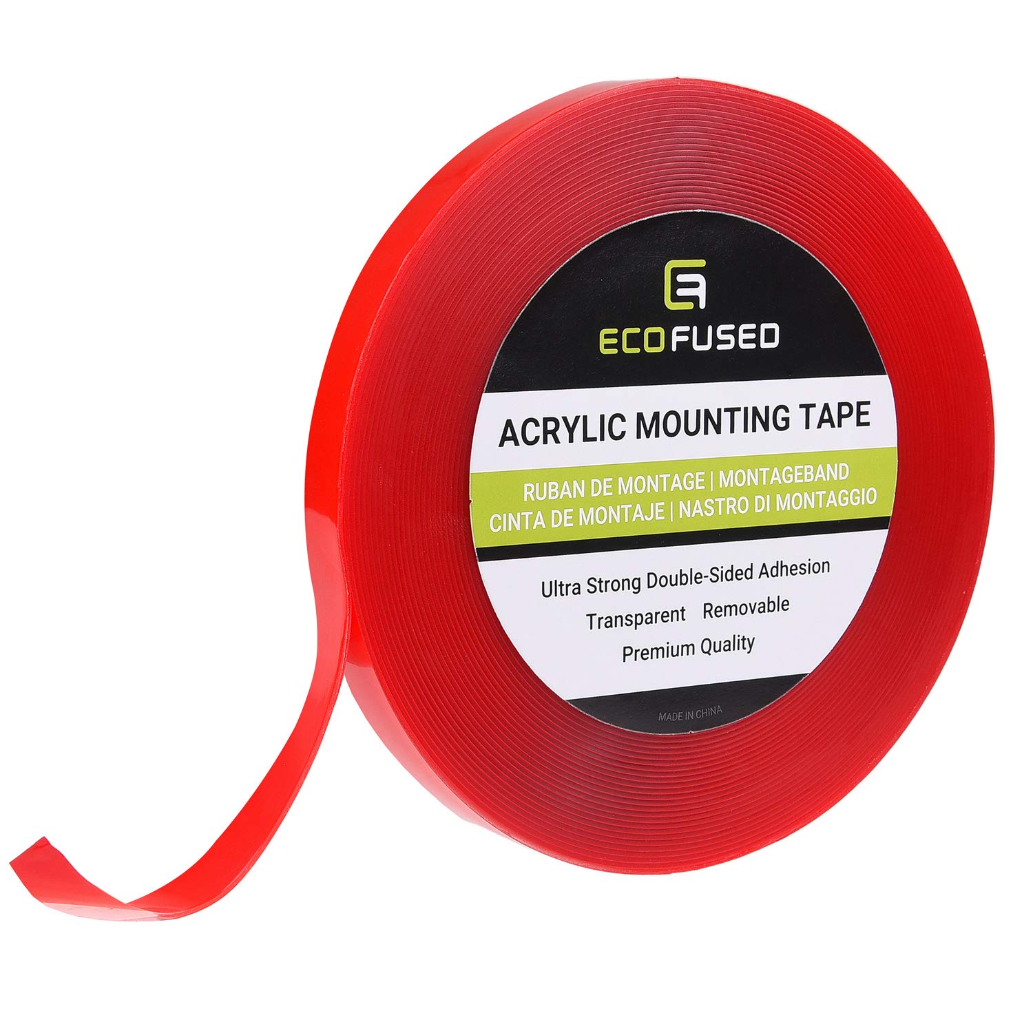Eco-Fused Acrylic Mounting Tape - 2" x 12.6 Yards - Ultra Strong Double-Sided Adhesion - Transparent - Removable - All Types of Surfaces - Weatherproof - for Indoor and Outdoor
