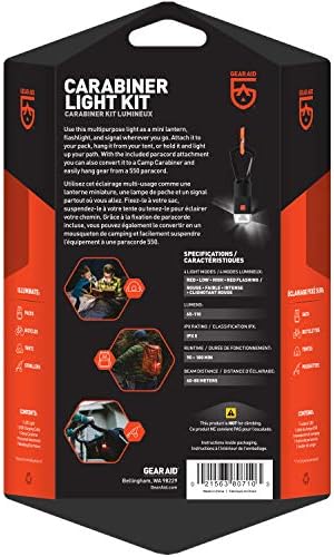 The Carabiner Light Kit includes a rechargeable LED light with four light modes and can be used as a flashlight, mini lantern, signal and night light. Easily hang it from a tent, pack, or on a line above a hammock. Attach it to a backpack strap for a bright light that’s accessible and handy even on the go. The powerful and portable light recharges within 40 minutes using a USB cable and is protected by a durable IPX4 water-resistant case. When lighting is not needed, convert it to a Camp Carabiner with the paracord adapter and hang up to 25 lbs. of gear on a line. For outdoor lighting in any weather condition, use the multipurpose GEAR AID Carabiner Light Kit.