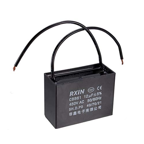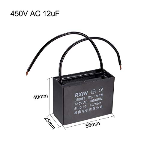 uxcell Ceiling Fan Capacitor CBB61 12uF 450V AC 2 Wires Metalized Polypropylene Film Capacitors 58x40x25mm for Water Pump Motor Generator