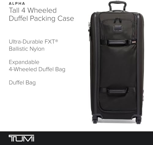 - Expandable Travel Suitcase: The TUMI Alpha Tall 4 Wheeled Duffel Packing Case merges the flexibility of a duffel suitcase with wheeled convenience, expanding up to 2" for added space