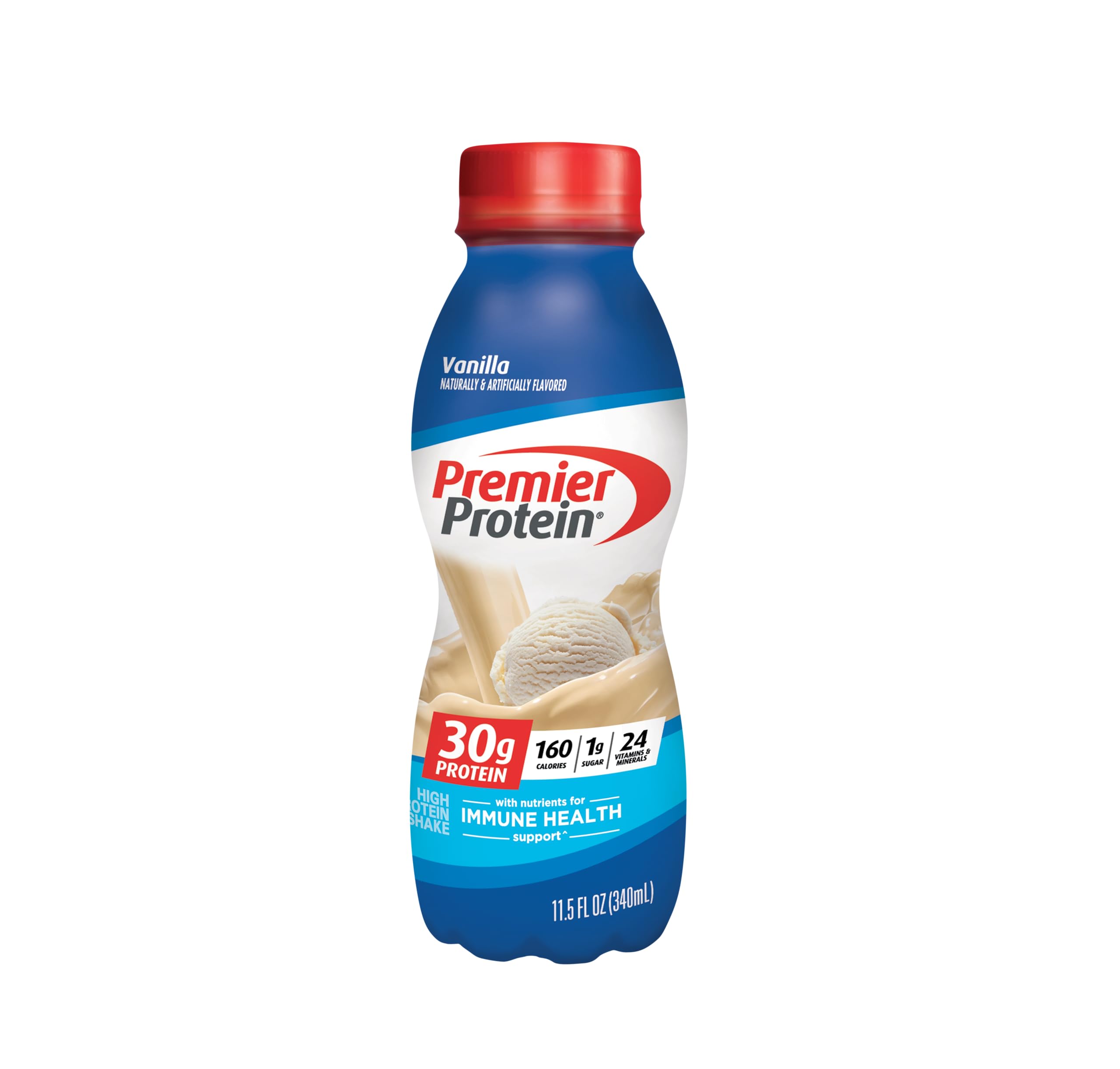 Packaged in an 11.5oz bottle, each Premier Protein Shake contains 30g of protein, complete with all the essential amino acids, 1g of sugar, 3–5g of carbs (depending on flavor), 160 calories, 24 vitamins and minerals, and is also low in fat. We use a blend of milk protein concentrate and calcium caseinate to help support your fitness goals. Enjoy a shake as a healthy snack, a breakfast on the go, or as post or pre-workout fuel. They are delicious as is but also highly customizable. Blend with your favorite fruits and vegetables in a smoothie, pour over cereal or oatmeal, or use as a base for proffee (protein coffee) or protein ice cream. Available in 12 core flavors: Bananas & Cream, Cake Batter Delight, Cafe Latte, Caramel, Chocolate, Chocolate Peanut Butter, Cinnamon Roll, Cookie Dough, Cookies & Cream, Peaches & Cream, Strawberries & Cream, and Vanilla. (Seasonal flavors also available for a limited time.)