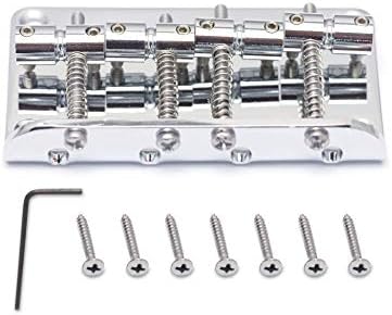 Metallor 4 string Bass Bridge Hard Tail Fixed Top Load Bridge Compatible with Jazz Bass Precision Bass Guitar Chrome.