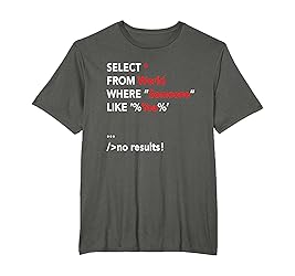 - Funny SQL Tshirts Coder Shirt Programmer Tshirt Programming. This is designed by NDG. Click the Brand Name link above the title to view more of my designs, as well as different material options for a more fitted or relaxed fit.