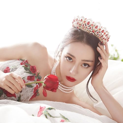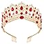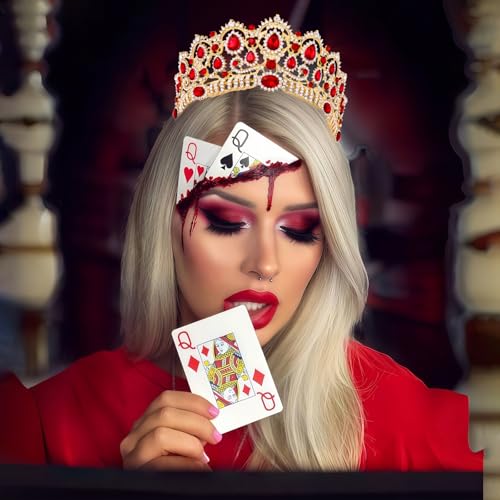 Queen of Hearts Costume Crown, Evil Queen Gold Red Tiara Princess Belle Evie Glinda Scarlet Witch Ruby Heart Crystal Accessories Christmas Headband for Adult Women Woman Halloween Party