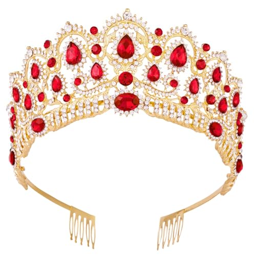 - ♕All Vofler tiaras are 100% handcrafted, this women headpiece is handmade by durable gold plated alloy, ruby red rhinestone and sparkle crystals - shining bright like diamond