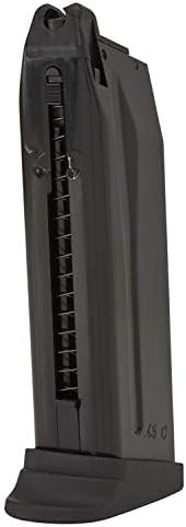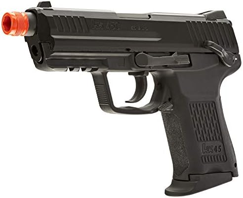 The HK 45 GBB gas airsoft gun has a velocity 330 FPS with a moving hammer, tactical rail and gas blowback realism. This all metal pistol features a 28 round capacity. Licensed Trademark of Heckler & Koch GmbH