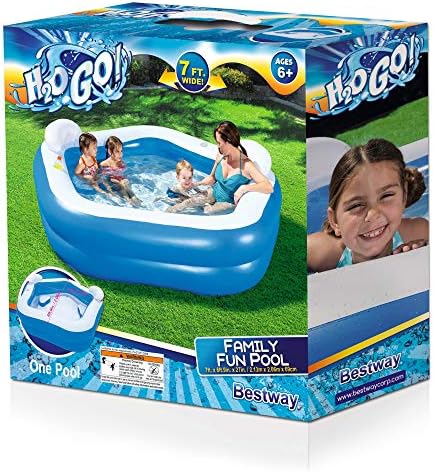 Designed to get kids and adults moving, grooving and out of the house, the H2OGO! Family Fun Pool puts the focus back on fun! With 2 cup holders to hold the cold beverage of your choice, 2 inflatable cushions and a headrest for maximum comfort, the Family Fun Pool provides a great place to rest and relax. With extra wide side walls, this pool is perfect for younger families to splash and play in the sun. And taking the Family Fun Pool down is a breeze with the easy to use drain valve. Splashing in the sun has never been more fun! Recommended for ages 6 and up. WARNING: CHOKING HAZARD -- Small parts. Not for children under 3 yrs.