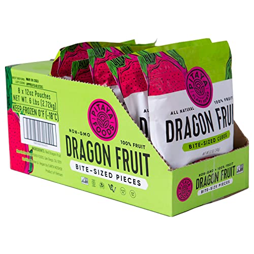 Pitaya Foods - Natural Dragon Fruit Cubes, Pre-Packaged Frozen Fruit, No Added Sugar or Preservatives, Good Source of Fiber, Magnesium, Iron, & Vitamin C, 100% Fruit, Non-GMO (12 oz, 8-Pack)