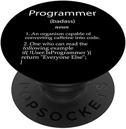 Programmer Definition. Programmer Definition - Funny Developer Gift Coder IT NERD. Programmer Definition PopSockets Grip for Coders! An organism capable of converting caffeine into code. One who can read the following example if( !User.IsProgrammer ){return "Everyone Else", }.