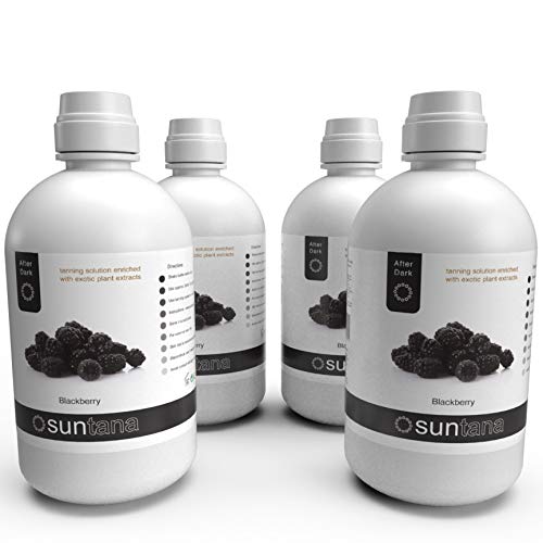 - 4 x 32oz Blackberry fragrance after dark tan – Try the seductive aroma of blackberries Formulated with 14% DHA (our darkest tan) – this is our blackberry fragranced, ‘After Dark’ spray tan solution. Tan results have deep, dark undertones. Recommended for sun goddesses and those looking for the darkest tan. Recommended for dark to very dark untanned skintypes.
