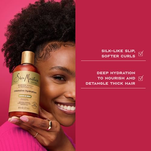 - La Leche Hidratante Intensiva para el Cabello con Miel Manuka y Aceite de Mafura de SheaMoisture es un tratamiento para cabello seco mezclado con Mantequilla de Karité Justo para deshacer fácilmente los enredos del cabello seco.