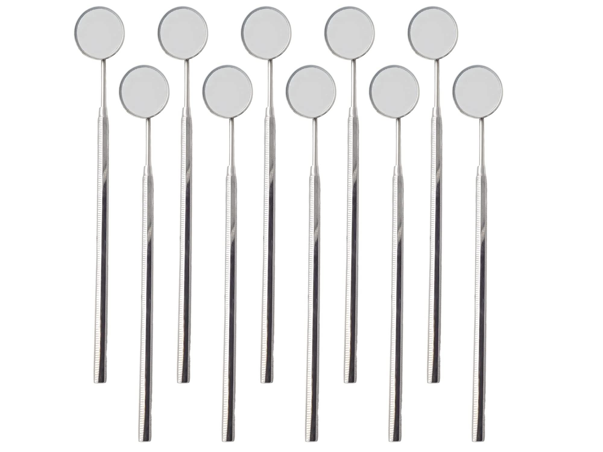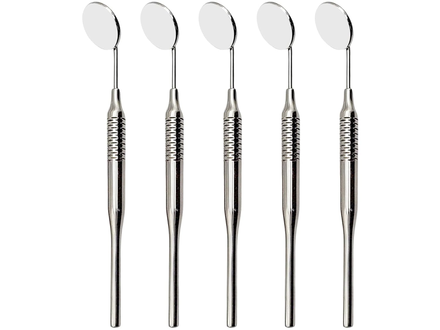 - ✔ RHODIUM PLATING MIRRORS : Rhodium plating is extra shining plating that makes our product far superior in reflection. The rhodium mirror plate is sealed with the silicone at the back that makes it long lasting and water resistant. This plating makes the mirror as front surface reflection that provide a more clear image and turn it anti fog that is a usual problem when the mirror is inserted in the mouth.
