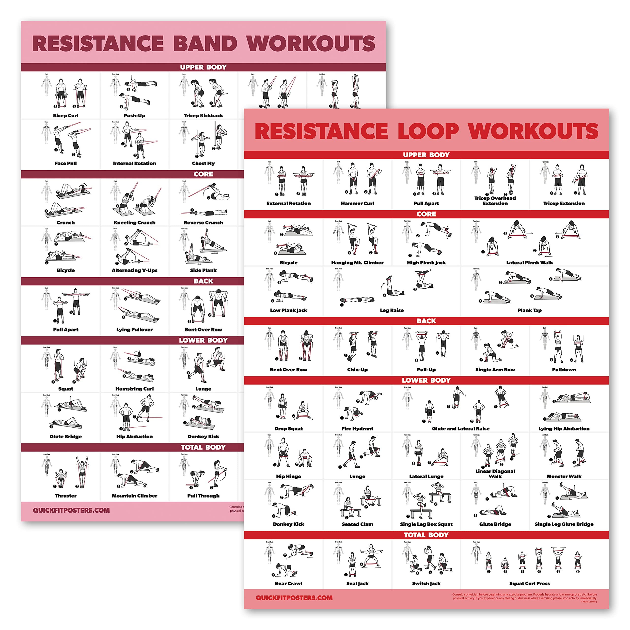 Palace Learning QuickFit Dumbbell Workouts and Kettlebell Exercise Poster Set - Laminated 2 Chart Set - Dumbbell Exercise Routine & Kettle Bell Workouts - (18" x 24")
