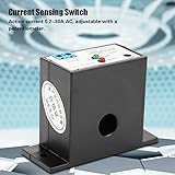- SZC23 series AC current sensing switch is designed and manufactured to solve the AC current monitoring. It uses the principle of mutual inductance to sense the AC straight-through current, isolate the AC current, and output a normally open or normally closed switching to directly control various automation industrial equipment, such as flash, buzzer, relay, single-chip or other power load equipment. Compared with traditional mutual inductors, thermal protectors and other devices, using this device can not only get more accurate and more timely control, but can also greatly simplify the design and reduce costs. Specification: Model: SZC23-NO-AL- Power supply: Not required Rated load: ≤ 0.5A@240V AC/DC Input current: 0.2-30A AC Switch on minimum: 0.5±0.2A Maximum overload: Leakage current: ≤0.1A Accuracy: 1% Hysteresis: ≤1% Response time: ≤200ms Repeatability: Working temperature: -20~60℃ Waterproof: IP30 Dimensions: 65×25×47mm / 2.56×0.98×1.85in Hole diameter: 10mm / 0.4in Package weight: Approx. 56g/2.0oz Package list: 1 × Current Sensing Switch Note: 1. Due to the difference between monitors and light effects, the pictures may not reflect the actual color of the item. 2. Please allow slight error due to manual measurement. Thanks for your understanding.