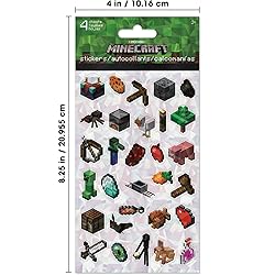 - Bring joy to any occasion with the Minecraft Standard Stickers set. Featuring four sheets of high-quality, easy-to-peel stickers, this pack is perfect for party favors, classroom rewards, or everyday fun. Each sheet showcases a variety of beloved Minecraft characters, ensuring there's something for everyone. These versatile stickers are ideal for decorating notebooks, crafts, or creating imaginative scenes. Durable and long-lasting, they're a hit with kids and adults alike